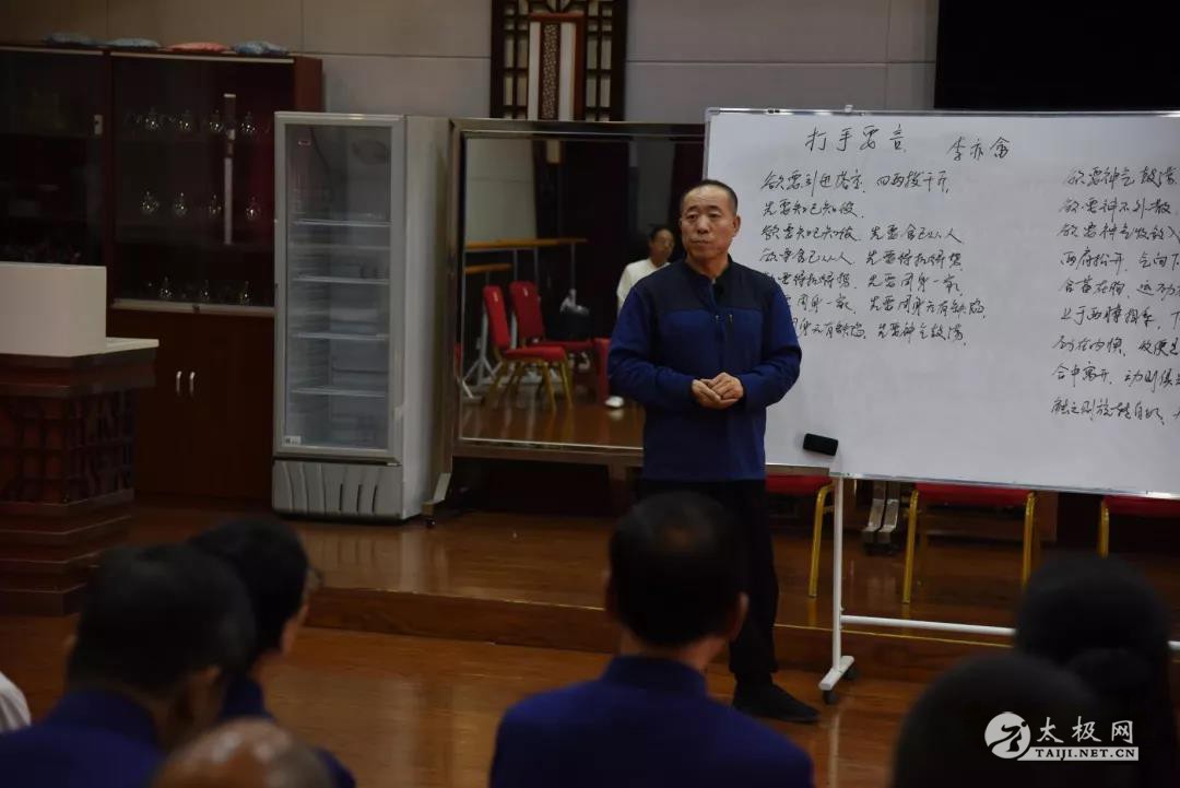 报到期间,师兄弟们也是老友们相见倍感亲切,互相热情交流了自己最近的练拳经验,然后简单学习了一下新编杨氏太极拳二十四式。 中午大家一起聚餐后,很多弟子们为了不耽误下午上课,便在培训中心内各自简单摆了几把椅子躺在上面休息,大家高涨的学习热情让人感动。 下午3点半弟子培训班在培训中心正式开课。 首先范德治老师对李亦畲的《打手要言》这篇文章逐句进行了精彩讲解,表示:“学拳应从根上学起”。然后范老师带领大家通过一些动作来体会《打手要言》的内容。很多人也许看过《打手要言》,但有很多弄不明白的地方,今天听过讲解后纷纷表示恍然大悟。