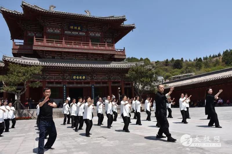 在一个大殿前面的空地,大家在范德治老师和杨氏太极拳第五代传人刘太多老师、杨明壮老师的带领下表演了杨氏太极拳三十七式和新编杨氏太极拳二十四式。精彩的演练立刻引得四周游客纷纷停下脚步欣赏,演练完毕后四周响起了响亮的掌声。 下午两点半,大家来到龙泉寺服务中心挂着“隐恶扬善”牌匾的室内进行室内教学。 首先是答疑环节,大家拿出事先准备好的问题一一向范老师提问。范老师也一个一个进行了详细的解答。通过听别人提出的问题和范老师的讲解,不但让大家了解这些问题,同时也让大家审视自己是否也有同样的问题。 然后范老师对前一天未讲完的三十七式后半段的每个动作要点进行了深入讲解,认真的听老师指出大家动作上的问题,再一遍一遍地认真练习。 下课后是自由活动时间,大家各自到自己感兴趣的景点参观游玩。 在山上最高的龙泉寺牌匾的门前,面对着美丽的风景,学员们再次集体演练了新编杨氏太极拳二十四式。演练完毕大家兴奋的向航拍无人机挥手,美好的一天结束了。 5月3日是范德治老师五一弟子培训班的最后一天。早上7点,大家准时集合乘车出发前往山西阳泉市盂县报国寺参加“助力二青,太极同行,杨氏太极在行动”大型表演活动。 此次活动由多方团队参加:范德治老师的弟子团队、阳泉市太极拳协会团队、盂县太极拳协会团队,共计将近180人。 站在最前面带领大家演练的是: 阳泉市太极拳协会会长、杨氏太极拳第五代传人王仲文 杨氏太极拳第五代传人范德治 杨氏太极拳第五代传人刘太多 杨氏太极拳第五代传人杨明壮 杨氏太极拳第五代传人黄建东 盂县太极拳协会会长韩桂英 在各位老师带领下,大家在报国寺内美丽的环境下进行了杨氏太极拳103式和太极拳八法五步的演练,并运用无人机进行航拍。宏大壮观的演练场面,动听的音乐,使得游客们纷纷驻足观看。 然后范德治老师在寺内为阳泉和盂县的太极拳爱好者们做了太极拳的讲座,通过明了的动作演示和通俗的语言为爱好者们生动的指出了太极拳在习练过程中容易犯的错误。大家听得非常认真,范老师每讲解完一个问题便纷纷报以掌声。直到讲座结束大家还听得意犹未尽。 中午在寺内食堂吃过斋饭后弟子们自由活动游览参观了庄严的报国寺和烈女祠。 下午3点,大家乘车到达桃林沟,在里面的梨园舞台前参加了当地的五一文艺汇演活动。先由弟子们集体表演了杨氏太极拳三十七式,他们整齐划一、英姿飒爽的身影使得观众们纷纷鼓掌。 |