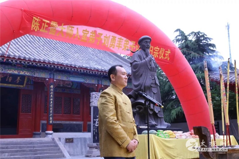世代传承,薪火相传。 德厚流光,高情远致。 如果说世代传承,是按照血脉关系将传统文化、家风和技艺一代接一代地相继传承下去,薪火相传就是形骸有尽而精神不灭。 5月12日上午,国家级非物质文化遗产项目陈氏太极拳杰出传承人、太极拳“四大金刚”之一陈正雷先生入室弟子刘勇老师收徒仪式在南京举行,来自全国十六个省市和澳大利亚的52名爱好者,成为刘勇老师新收弟子。 陈氏太极拳第十二代嫡宗传人陈媛媛老师代表陈正雷弟子理事会发言 仪式结束后,当天晚上刘勇和新收弟子就乘车赶到达陈家沟,到时已是入夜,陈氏十九世、陈氏太极拳第十一代嫡宗传人陈正雷亲自到宾馆门口迎接,嘘寒问暖、满怀深情问大家,反复叮嘱工作人员要照顾好大家,体现了师爷对再传弟子的浓浓亲情。 2019年5月13日上午,陈正雷先生入室弟子刘勇率弟子认祖归宗仪式在太极故里陈家沟太极拳祖祠隆重举行。太极宗师陈正雷先生亲自带领嫡宗传人陈斌、陈娟、陈媛媛、入室弟子刘勇和刘勇新收的52名弟子,三代传人齐聚太极拳圣地,认祖归宗,礼拜太极先祖。 陈家沟陈氏家族理事会副会长陈景安先生祭拜先祖 陈正雷先生之子陈斌致祭文 陈正雷先生行礼、上香、敬酒、叩拜祖师 陈正雷先生携儿子陈斌,女儿陈娟、陈媛媛,入室弟子刘勇祭拜太极拳始祖陈王廷 刘勇率弟子祭拜太极拳始祖陈王廷,带领弟子行礼、上香 陈正雷先生入室弟子刘勇讲话,表达陈氏太极拳后世传人对先祖的敬仰之情,感谢陈正雷老师培育之恩,告诫弟子立志要传承和弘扬太极拳文化。 陈正雷先生致辞:我们的大家庭又添新丁,壮大了我们的队伍,为我们太极大家庭增添力量,祝贺你们找到了一位德艺双馨的师傅。我们三代传承人同时来到陈家沟祭拜先祖的目的就是要继承家风,薪火传承,世代沿袭,经久不衰,我们加入了这个大家庭,今后就要精诚团结、互相帮助、互相学习、把我们的家传技艺、民族文化发扬光大,让太极拳为我们的国家人民健身和人类健康多做贡献。 国家一级美术师,中央文史研究馆书画院研究员王德恭老师讲话 陈斌、刘勇、陈娟、陈媛媛带领大家共同演练陈氏太极拳三金刚 参天之木必有其根,环山之水必有其源;五十年前,陈正雷先生正是从这里出发,背负着家族的责任和历史的使命,开始了他丰富而又多彩的太极人生。三十年多前他的入室弟子刘勇来到陈家沟,跟随陈正雷老师学习太极拳文化和技艺。今天陈正雷老师和弟子三代传承人齐聚陈家沟太极祖祠祭祖,就是为了铭记先祖们的德行和教化,秉承师祖们精神和意志,不忘祖训,把家传技艺、民族文化发扬光大。 本站责编:张欢 |