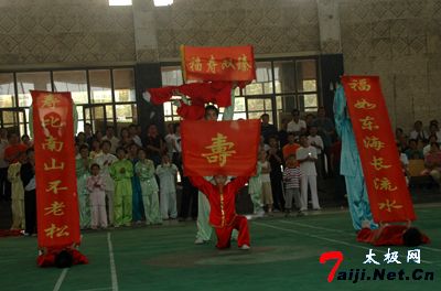 点评席上,除了王西安大师以外,王西安拳法研究会会长闫素杰以及王战海、王二毛、张福旺、陈二虎等太极拳名家,学员每表演过后,名家们轮流对学员们的表演一一进行点评。名师点评,茅塞顿开,面对名师中肯而到位的点评,学员们频频点头。点评会期间,陈家沟武术学校的小学员们也为老师表演了太极拳套路及刀、剑等精彩节目,以此为老师祝寿。