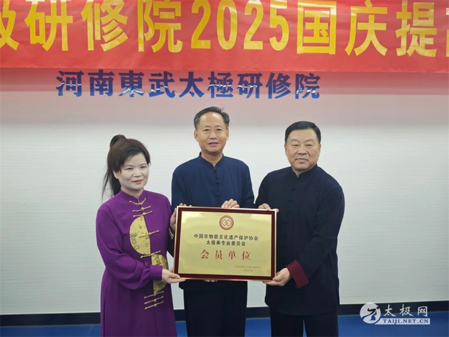10月2日,在国庆与中秋双节同庆的美好时节,东武太极研修院第二十四届陈式太极拳高级培训班开班典礼举行。中国非物质文化遗产保护协会副会长、太极拳专业委员会主任姜继鼎,中国非遗保护协会太极拳专委会副主任崔玉山、副秘书长王彤宇,张东武老师,徐勤兰老师,东武太极研修院办公室主任张晓力等领导、嘉宾及教练出席典礼,与来自全国各地的太极拳学员齐聚一堂,共同开启这场非遗文化研修之旅。 典礼伊始,主持人张宇欣向全场介绍出席活动的领导、嘉宾与教练团队。除核心嘉宾外,东武太极研修院建德培训基地主任邓林林,老架一路提高班主教练李卫波,56 式提高班主教练张宇浩,推手班教练王超峰、张雷、王雨等一众资深教练也悉数到场 —— 他们均为张东武老师弟子,兼具深厚武学功底与丰富教学经验,将为本次高级培训班提供专业指导。全场以热烈掌声,向远道而来的学员与深耕太极传承的嘉宾、教练致以诚挚欢迎。 作为本次培训班总教练、东武太极研修院院长,张东武老师在欢迎词中首先向支持太极传承的各级领导、嘉宾及学员表达欢迎与感谢。他指出,中国非遗保护协会太极拳专委会是当前官方主导太极拳发展的最高专业机构,在姜继鼎主任的带领下,始终为太极拳非遗传承注入强劲动力;2020 年 12 月 17 日太极拳正式列入世界非物质文化遗产名录,更标志着这项中华传统技艺迈入 “全球共享” 的新征程。他表示,本次高级培训班将聚焦陈式太极拳核心技艺,从老架一路、56 式到太极剑、推手,通过 “名师带教、精准指导” 帮助学员突破技术瓶颈,同时希望学员们在研修中体悟太极 “以柔克刚、内外兼修” 的文化内涵,成为非遗传承的 “践行者” 与 “传播者”。 中国非遗保护协会副会长、太极拳专委会主任姜继鼎在发言中,对东武太极研修院的传承成果给予高度肯定。他指出,太极拳专委会正全力推动太极文化保护与传承,而东武太极研修院无疑是其中的 “中坚力量”—— 从 “太极之家” 的家风传承,到全国化、国际化的布局拓展,再到专业细致的教学体系,均展现出研修院对非遗传承的热忱与担当,“‘会员单位’的授予,东武太极研修院实至名归”。 同时,姜继鼎主任也对研修院提出期望:“这既是荣誉,更是责任与使命。” 他强调,未来东武太极需在 “年轻化、时尚化、数字化、国际化” 四大方向持续发力 —— 通过年轻化培养吸引更多青年群体,以时尚化表达贴近现代生活,用数字化手段扩大传播半径,借国际化平台讲好太极故事,真正成为 “太极拳非遗保护传承的主力军”。此外,他还鼓励在场学员珍惜研修机会,在提升技艺的同时修身养性、提升素养,以自身行动为太极文化 “争光添彩”。 典礼现场举行了庄重的 “会员单位” 授牌仪式。姜继鼎主任代表中国非物质文化遗产保护协会太极拳专委会,向东武太极研修院正式颁发 “会员单位” 牌匾,张东武老师、徐勤兰老师共同接牌。这块牌匾不仅是对东武太极过往传承工作的认可,更标志着双方将在太极文化保护、技艺推广、人才培养等领域展开更深层次合作,为非遗传承注入更多资源与动能。全场掌声雷动,共同见证这一意义非凡的时刻。 授牌仪式后,全体人员奏唱《中华人民共和国国歌》,在激昂的旋律中抒发家国情怀;随后,领导、嘉宾、教练与全体学员共同拍摄集体合影,定格下这份 “因太极相聚、为传承同行” 的珍贵记忆。 典礼结束后,张东武老师随即开启本次高级培训班的首堂课程,围绕 “陈式太极拳习练要点” 展开细致讲解,从身法、步法到呼吸配合,以深入浅出的方式帮助学员夯实基础、领悟精髓,正式拉开为期数日的研修序幕。 据悉,本次东武太极研修院第二十四届陈式太极拳高级培训班,将通过 “理论 + 实践”“基础 + 进阶” 的教学模式,助力学员系统提升太极技艺;同时,研修院也将以此次开班为契机,持续深化非遗传承实践,让太极拳这一 “世界非遗” 在新时代焕发出更耀眼的文化光芒。 |