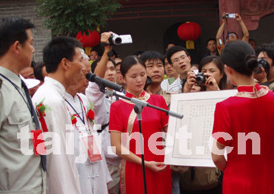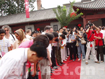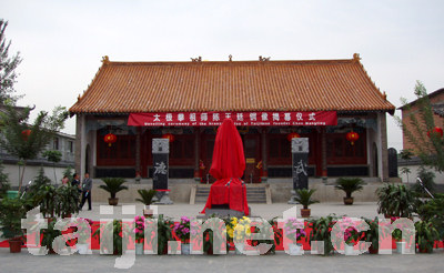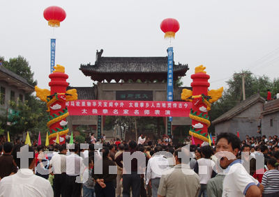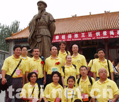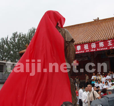 8月21日下午,太极拳祖师陈王廷铜像揭幕仪式在温县陈家沟举行。国际武术联合会副主席雷蒙•史密斯,国际武术联合会秘书长、中国武术协会主席、国家体育总局武术运动管理中心主任、大会组委会主任王筱麟,市领导王太峰、苗绍勇、霍金花、王哲、乔承久、张献华等领导出席了揭幕仪式。