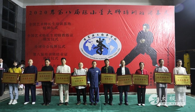(太极网 讯)10月5日,2020年第八届陈小星大师培训班学员们经历了三天的紧张学习正式结业,来自全国的太极拳爱好者们,通过考核,全部顺利的拿到结业证书,3天时间里大家和陈小星老师零距离接触,相互切磋交流学得技艺,收获满满,培训班闭幕式于陈家沟隆重举行。在闭幕式上颁发了第八届陈小星大师培训班结业证书,全国艺术特长生初级教练证书,全国30家单位全国艺术特长生培训基地牌匾,29家陈家沟陈氏太极拳协会新分会牌匾,以及“陈家沟荣誉村民”证书,期间进行了精彩纷呈的名家表演。 陈家沟太极拳学校总教练陈自强、陈家沟村村长陈景元、陈家沟陈氏家族族长陈景安、陈家沟陈氏家族理事会主任陈一华、陈家沟陈氏家族理事会秘书长陈石岩、陈小星大师弟子代表杨宝骞、陈家沟荣誉村民冷喜武应邀出席闭幕式。 陈自强为全国艺术特长生培训基地授牌 陈景元为全国艺术特长生培训基地授牌 陈景元为全国艺术特长生培训基地授牌 陈自强为陈家沟陈氏太极拳协会新分会授牌 陈自强为陈家沟陈氏太极拳协会新分会授牌 陈自强为陈家沟陈氏太极拳协会新分会授牌 陈自强为许春来、凌承渝、王久荣颁发纪念礼品 陈景元为张宗军先生颁发“陈家沟荣誉村民”证书 陈景安为学员颁发培训班结业证书 陈景安为学员颁发培训班结业证书 陈一华颁发第八届陈小星大师培训班结业证书 陈石岩颁发第八届陈小星大师培训班结业证书 杨宝骞颁发全国艺术特长生初级教练证书 冷喜武颁发全国艺术特长生初级教练证书 名家表演 全国艺术特长生初级教练证获得者名单: 符开辉 张桂秋 常跃杰 杨晓勉 赵立军 刘玉龙 严顺娴 董黎明 李海燕 赵动庆 唐英 苑立智 李伟 王世尧 管正华 李清霞 杨振利 马力 刘元庆 王保林 王魁 孙雪 龚远春 刘凤英 李华 袁宝华 张本忠 陈远帆 付媛 刘畅 刘克举 李阳 龚寿德 赵笑阳 付小青 李义臣 周德俊 李宏伟 张广明 张彦飞 张铧 何咏芳 梁泉 赵相芝 曹效华 张立杰 陈勇军 周静 郭东华 钱浩 张本玉 黄保仙 陈洪英 周直艳 金龙祥 李云梅 曾洪生 张志毅 郑小飞 邓静 樊乾坤 王仲钎 张新科 侯爽 陈河润 彭楚君 乔春宇 唐治颖 张洪帅 朱继彪 周鹏飞 贺勇 夏满意 全国艺术特长生培训基地负责人以及基地名单: 尚德望 上海市浦东新区培训基地 张宗军 山东枣庄培训基地 李小华 云南昆明培训基地 刘玉龙 安徽合肥培训基地 唐浩文 甘肃兰州培训基地 李清霞 广东珠海培训基地 王 魁 广东深圳龙岗区培训基地 袁宝华 北京海淀培训基地 刘克举 辽宁鞍山培训基地 李义臣 吉林通化培训基地 张 铧 河南淮滨培训基地 张桂秋 湖北武昌培训基地 何咏芳 云南泸西培训基地 苑立智 山西太原培训基地 杨振利 福建泉州培训基地 曹 孟 浙江温州培训基地 孙 雪 辽宁沈阳培训基地 符开辉 江西南昌培训基地 钱 浩 安徽宿州培训基地 周德俊 安徽巢湖培训基地 张本忠 山东济宁培训基地 李 阳 安徽淮北培训基地 李体育 广东惠州培训基地 张本玉 山东青岛培训基地 张仁萍 澳大利亚珀斯培训基地 张立杰 吉林长春培训基地 严顺娴 广东深圳罗湖区培训基地 张良淮 广东东莞培训基地 陈 佳 上海长宁培训基地 李再勤 海南海口培训基地 陈家沟陈氏太极拳协会新分会以及负责人名单: 陈家沟陈氏太极拳协会湖北黄冈分会 程影 陈家沟陈氏太极拳协会重庆垫江分会 夏仕伦 陈家沟陈氏太极拳协会山东高密市分会 王世尧 陈小星拳法研究会云南泸西分会 陈勇军 世界太极拳联谊会云南泸西分会 李萍 陈自强太极学堂安徽宿州分堂 李忠 陈家沟陈氏太极拳协会江西赣南分会 钟伟军 陈家沟陈氏太极拳协会河北邯郸分会 李岳芳 陈家沟陈氏太极拳协会安徽广德市分会 程红谊 陈自强太极学堂广东东莞分堂 段赞领 陈家沟陈氏太极拳协会湖南永州分会 唐爱国 陈家沟陈氏太极拳协会安徽巢湖分会 周德俊 世界太极拳联谊会江苏苏州分会 张鑫磊 陈小星拳法研究会江苏徐州分会 刘元庆 陈自强太极学堂福建厦门分堂 张志毅 陈家沟陈氏太极拳协会福建莆田分会 柯春水 陈家沟陈氏太极拳协会广东江门分会 申绍峰 陈家沟陈氏太极拳协会浙江横店分会 贺勇 世界太极拳联谊会辽宁沈阳分会 孙雪 陈家沟陈氏太极拳协会江苏建湖分会 杨玉霞 陈家沟陈氏太极拳协会安徽宣城分会王 保林 陈小星拳法研究会福建泉州分会 黄飞龙 陈家沟陈氏太极拳协会上海静安区分会 陈丽萍 陈家沟陈氏太极拳协会广东东莞黄江分会 杨国甫 世界太极拳联谊会江苏徐州分会 张栋育 陈家沟陈氏太极拳协会河南周口分会 胡二玲 陈家沟陈氏太极拳协会浙江横店分会 贺勇 世界太极拳联谊会安徽广德市分会 李华 2020年第八届陈小星大师培训班闭幕式由大拳师学院全程直播,点击观看现场盛况。 本网编辑:小杨 |