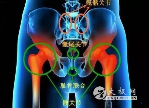 上图:胯(髋关节)的位置 这里,我们首先要理清胯的位置,“胯”是指人体的腹部与大腿的连接处,就是骨盆下的髋关节,俗称大腿根(腹股沟)。太极拳真正发劲打人力量的来源就是胯关节,不是腰。所以,太极圈才有“胯是通向太极拳搏击殿堂的一把金钥匙”一说。 我们常说的松胯的第一个功能就是胯(髋关节)的弯曲。 我们以陈式太极拳动作“懒扎衣”为例,屈膝松胯,上身保持立身中正,如果两胯松到位了,则两腿受力,移动重心时也都非常顺畅,底盘比较稳定,容易增涨功力。左右转动时也比较灵活。若虚腿(左腿)一侧的胯松不下来,那你的力道容易偏于实腿(右腿),太极拳理论说:“偏阴偏阳谓之病”,实际上实腿受力过多,容易造成右腿膝盖关节受力过大,日久则容易受伤,而且裆也合不住劲,一推就倒。 胯部支撑了上半身的重量,胯部(髋关节)放松弯曲,意味着大腿、膝关节等负担就重了一些,初学者腿部力量差,承受不了全身重量,动作就容易变形,造成不敢松胯,我建议初学者松胯时先走高架子,动作定型了,功力上来了,再低架子训练松胯。 上图:练拳时松两胯 松胯的第二个功能就是胯(髋关节)旋转,在旋转中松胯,才是真正意义上的松胯,这是太极拳的核心秘密之一。 例如陈式太极拳的动作“撇身拳”,在这一招的行拳走架中,重心在左腿,想要松左胯,左腿要脚抓地,膝盖定位,胯部才能放松、旋转、下沉,注意身体向旋转是在胯上旋转,不是腰上旋转,此时胯的上下屈伸、左右旋转功能被充分的体现出来。很多拳友在练习这个动作时,膝盖晃来晃去,感觉胯部也旋转了,其实这只是假象,胯根本就没有旋转到位。记住,只有脚抓地,膝盖定位,胯才能真正的旋转。